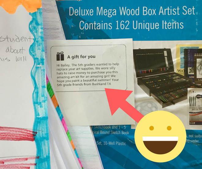 Along with 836 letters of support, Bailey received handmade Dance Tutus from Bushland, Texas, students to support her love of dance, and Art Supplies to support her love of Art.