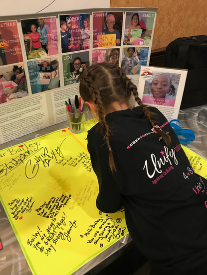 Bailey drew our Ambassadors on the rainbow with their words of support that she read in her Friend Mail: BE STRONG; HAVE HOPE; BE BRAVE; WE LOVE YOU!